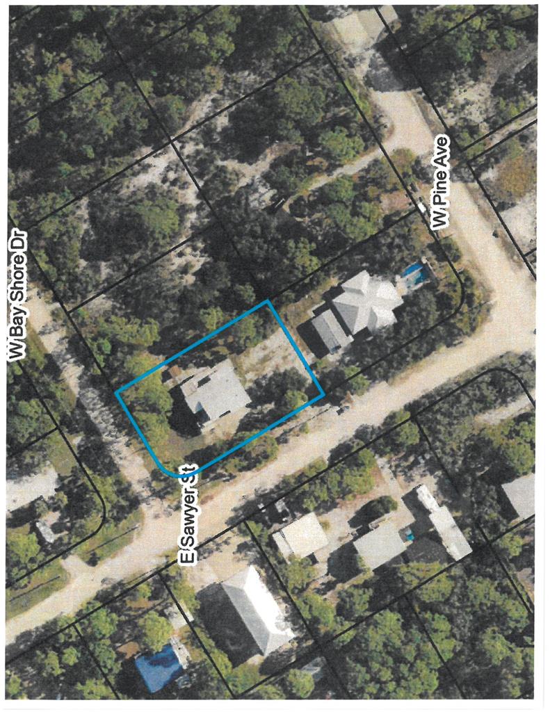 On St. George Island - West on Gulf Beach Dr. heading towards the Plantation. Right on 10th St. Go two blocks and turn left on West Bay Shore Dr. Property on the left on the corner of East Sawyer and West Bay Shore Dr.