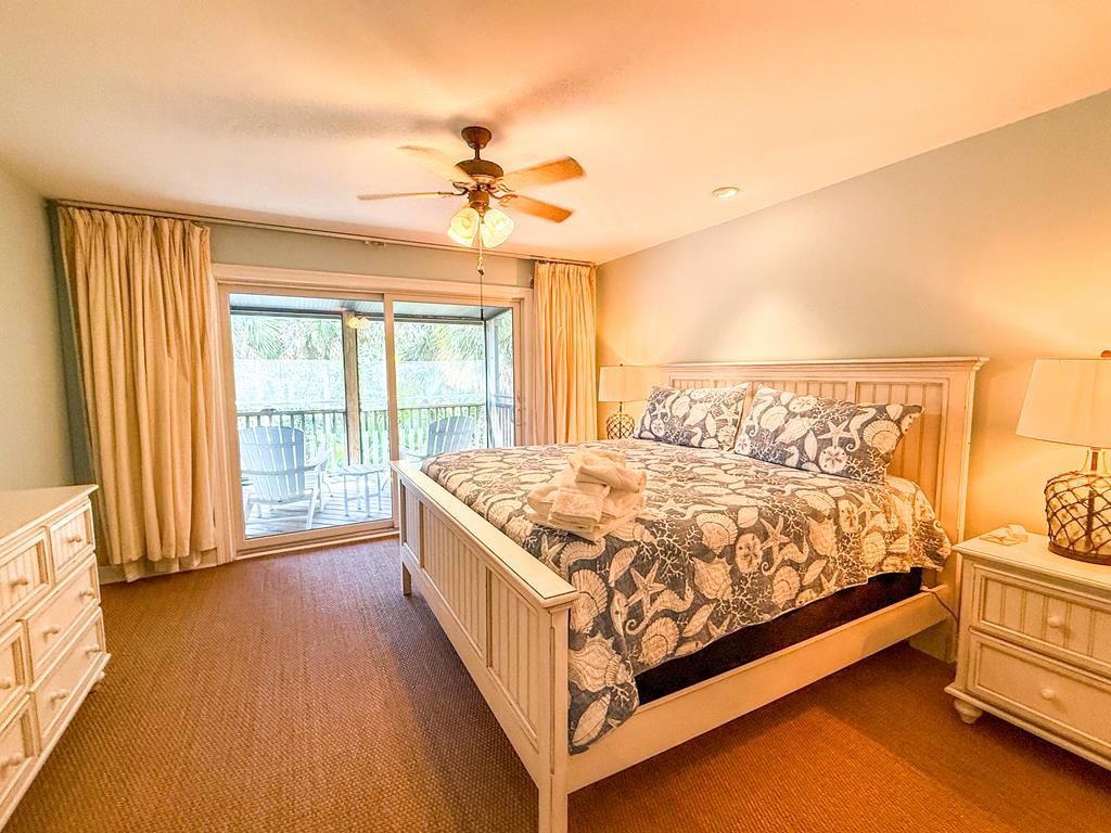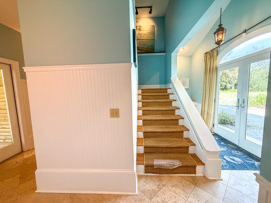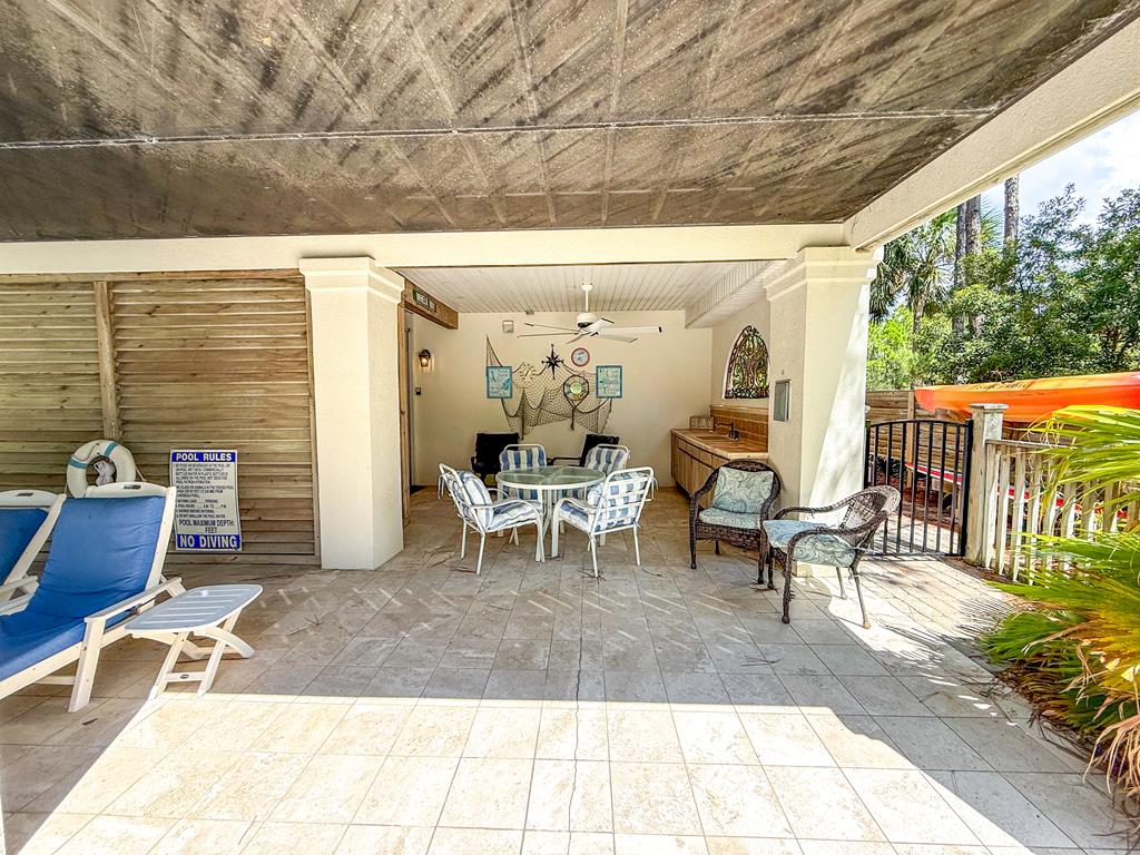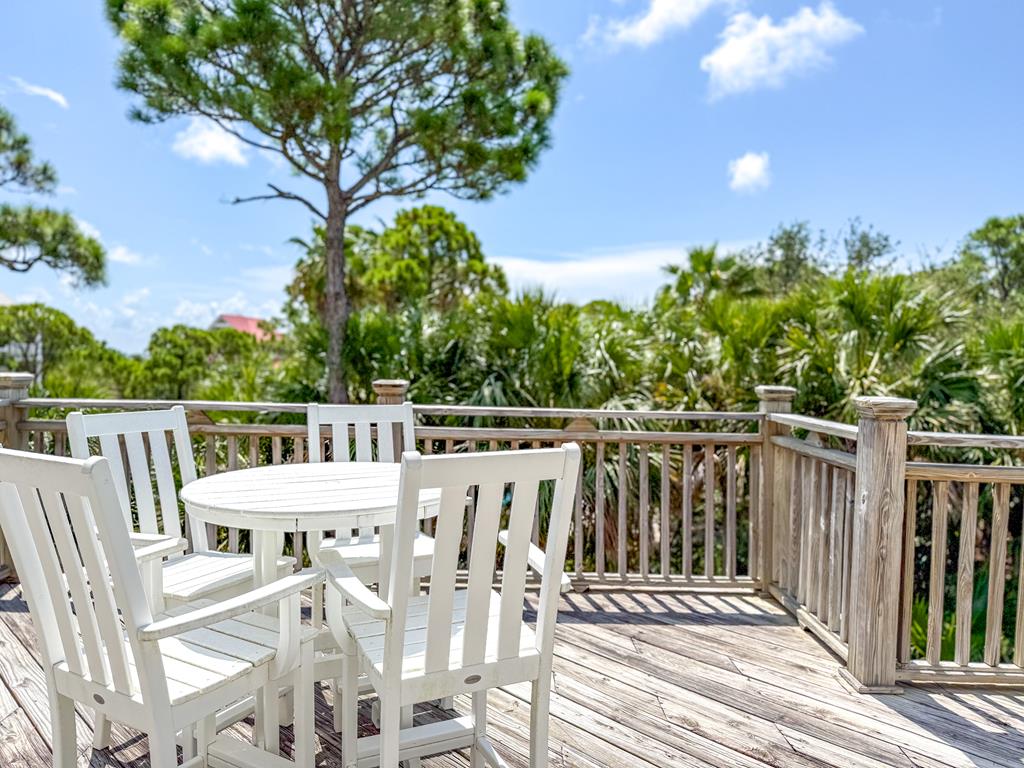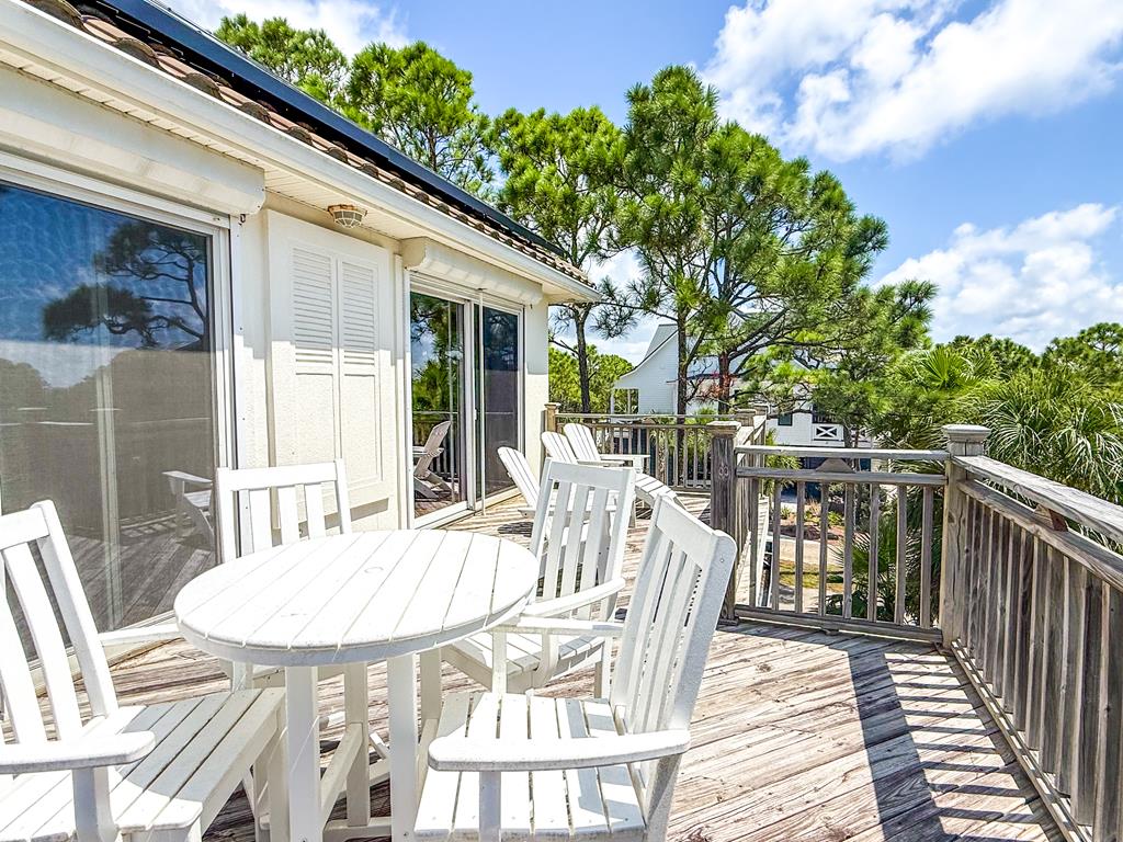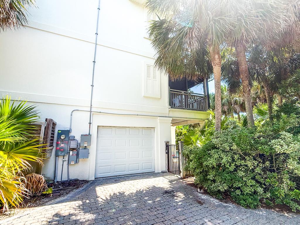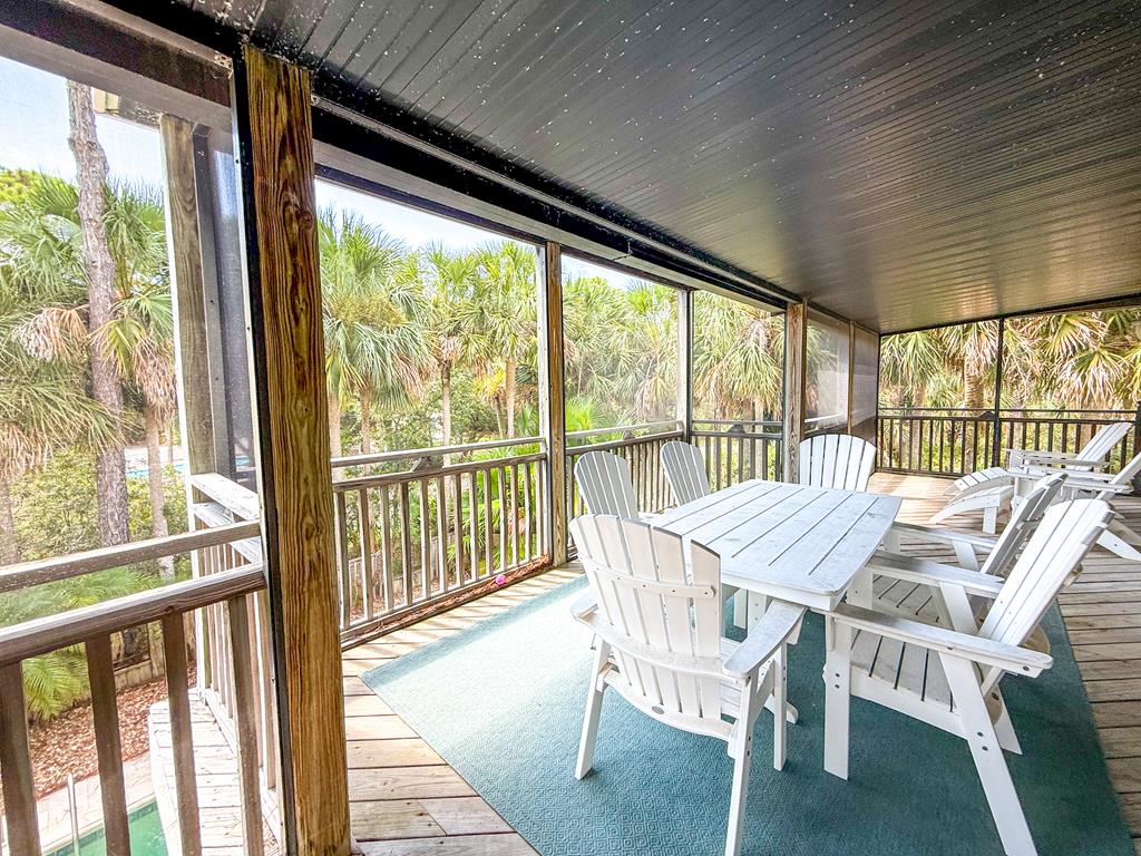 Welcome to island living at its finest. This beautifully renovated and fully furnished 5-bedroom, 4.5-bath Mediterranean retreat is tucked inside the gated community of St. George Island Plantation, just a short stroll from the sugar-white sand and emerald Gulf waters. With room to sleep 14, the home offers two spacious living areas perfect for gathering after long beach days, an open top-floor deck made for sunset skies, and a screened porch where you can relax and catch the coastal breeze. Inside, light-filled spaces blend comfort and coastal sophistication. Refinished hardwood floors, granite countertops, modern fixtures, updated hardware, polished metal railings, and refreshed bathroom lighting create a clean, elevated look that still feels relaxed and inviting. The kitchen and living areas flow effortlessly for entertaining family and friends. Thoughtful upgrades bring both efficiency and peace of mind. Solar panels installed in 2023 power the entire home—including the electric water heater—leaving only a minimal $30 monthly connection fee. A new large-capacity water heater and a brand-new aerobic septic system were also added, while hurricane shutters provide added protection and potential insurance savings. Step outside to your private pool, complete with a heater/chiller system for year-round enjoyment. New aluminum safety gates, a golf cart garage, and generous storage make beach days simple and stress-free. Located just 1,000 feet from the shoreline, owners enjoy all the amenities of St. George Island Plantation, including 24-hour gated security, two community pools, clubhouse, fitness center, tennis and pickleball courts, scenic bike paths, and even a 3,300-foot private airstrip. With strong rental history and impressive projections, this home offers the perfect blend of coastal comfort and income potential. Schedule your private showing today and start living the island life. New buyer fee of % to the Plantation Owner's Association.